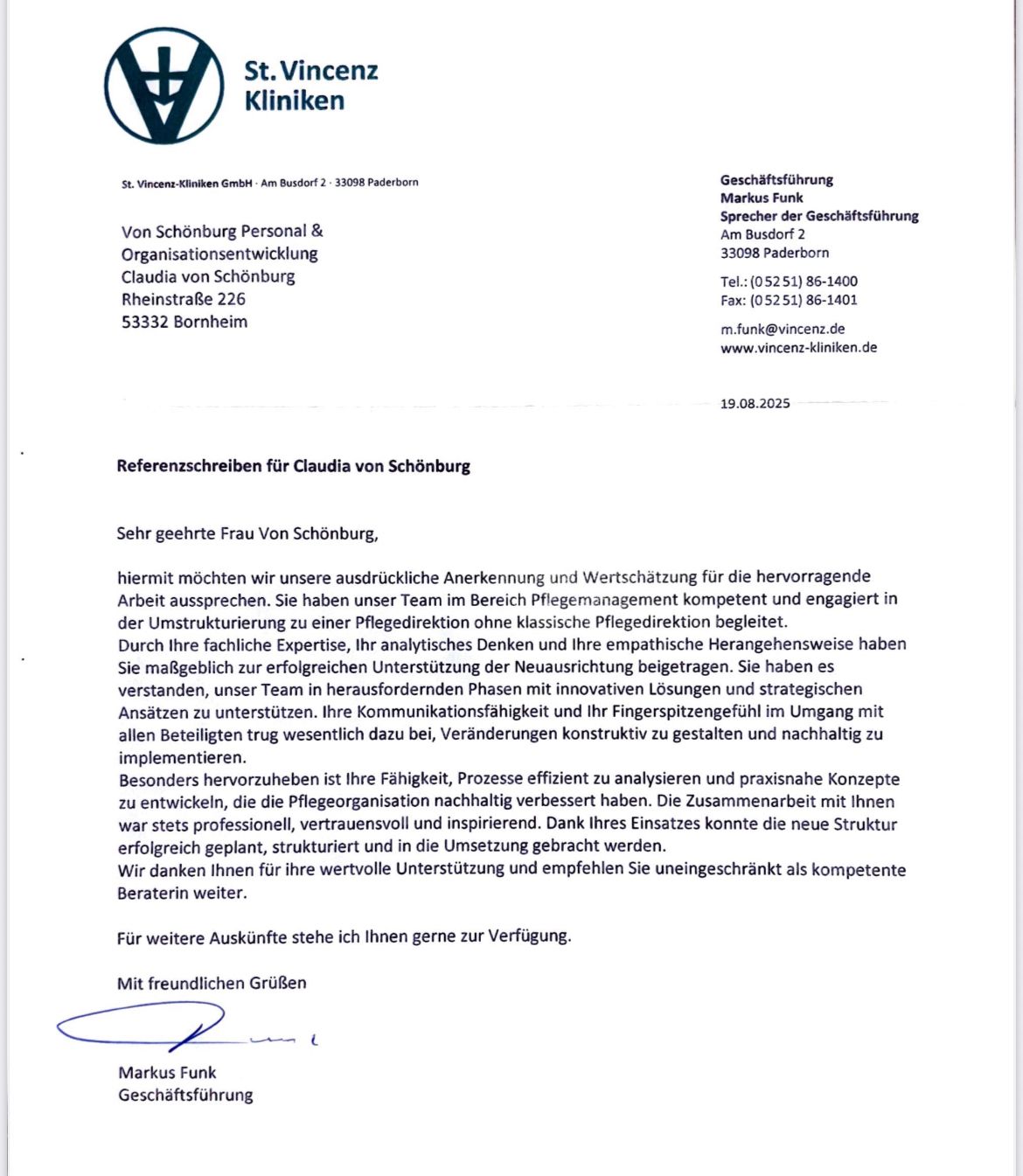 Ich kann die Kooperation und die Zusammenarbeit mit Claudia Gräfin von Schönburg nur im höchsten Maße und wärmstens empfehlen.